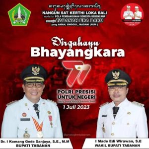 Kami, Segenap Keluarga Besar Satuan Polisi Pamong Praja Kabupaten Tabanan mengucapkan DIRGAHAYU BHAYANGKARA Ke-77, 1 Juli 2023.