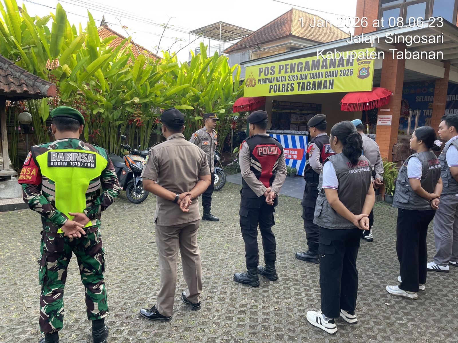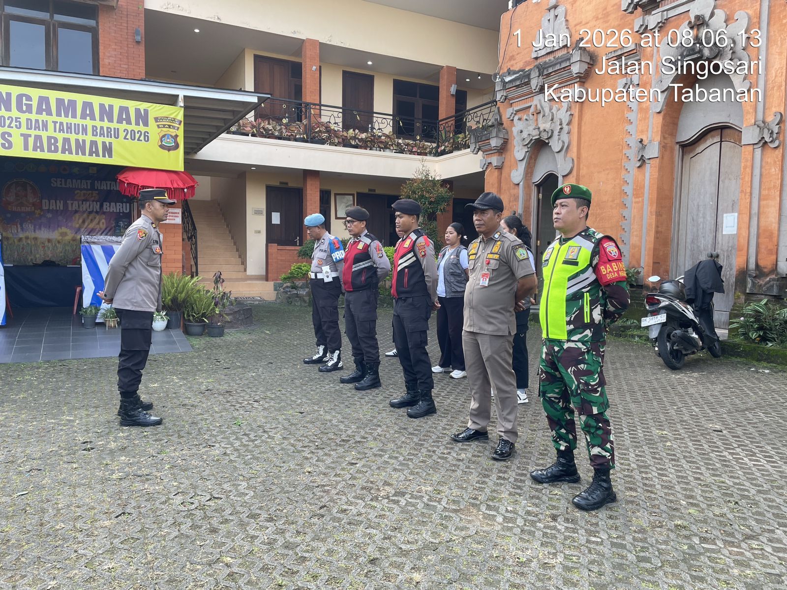 Satpol PP Kabupaten Tabanan melaksanakan pengamanan perayaan Natal dan Tahun Baru (Nataru) di Gereja Immaculata guna memastikan seluruh rangkaian ibadah berjalan dengan aman, tertib, dan lancar. Kehadiran personel di lapangan merupakan bentuk komitmen dalam memberikan rasa aman dan nyaman bagi umat yang melaksanakan ibadah.