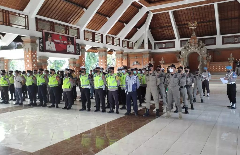 Pengamanan Regu Dalmas Satpol PP Tabanan dalam Giat Festival Cover/Aransemen Lagu Nangun Sat Kerthi Loka Bali di Garuda Wisnu Kencana, Tabanan.